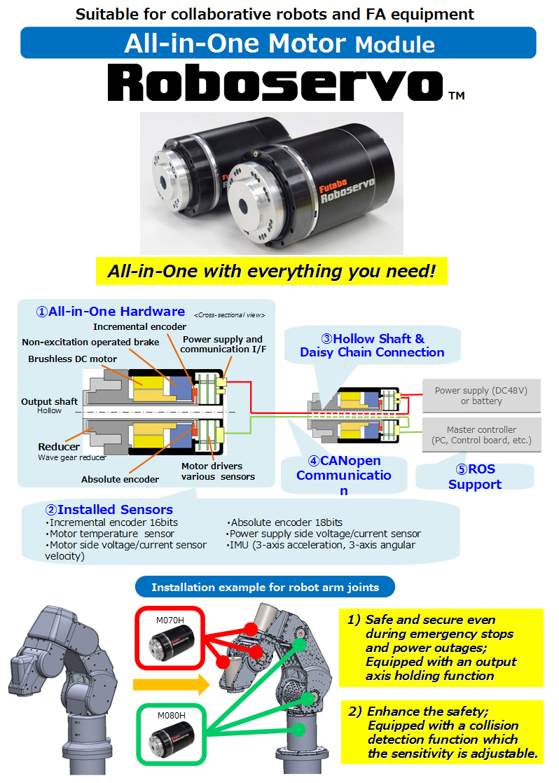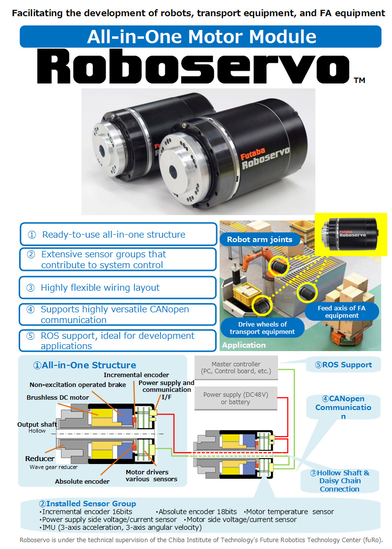 Futaba 工业舵机是 Futaba 公司生产的用于工业领域的舵机产品。该舵机是一种用于工业级无人机,控制机器人、自动化系统、机械臂等机电设备运动的电机,通常由电机、减速器、编码器和控制电路组成。